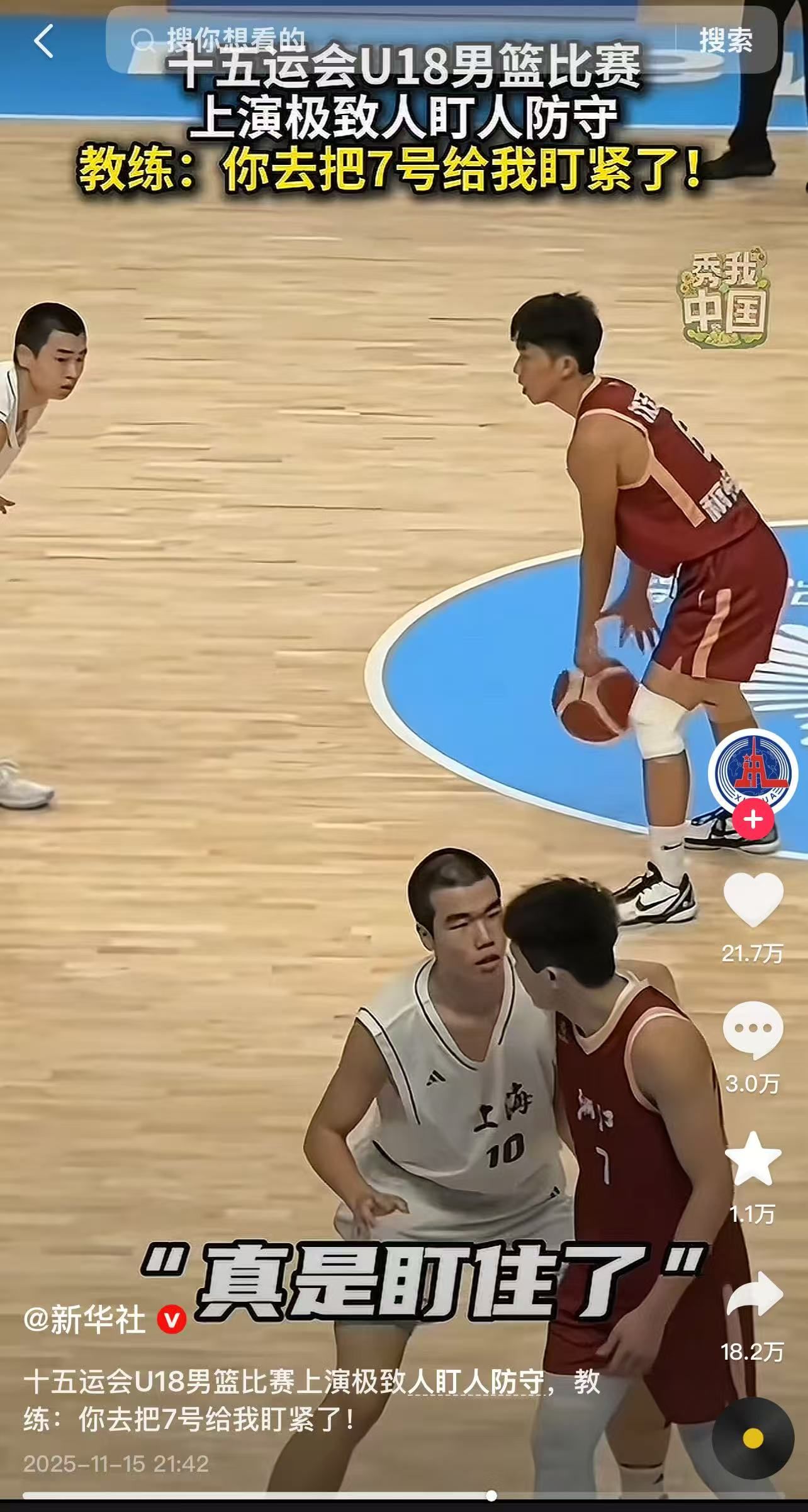 這一幕成為日前在澳門舉行的第十五屆全運會籃球男子18歲以下組比賽中的“名場面”,詞條“全運會驚現眼神防守”登上熱搜。