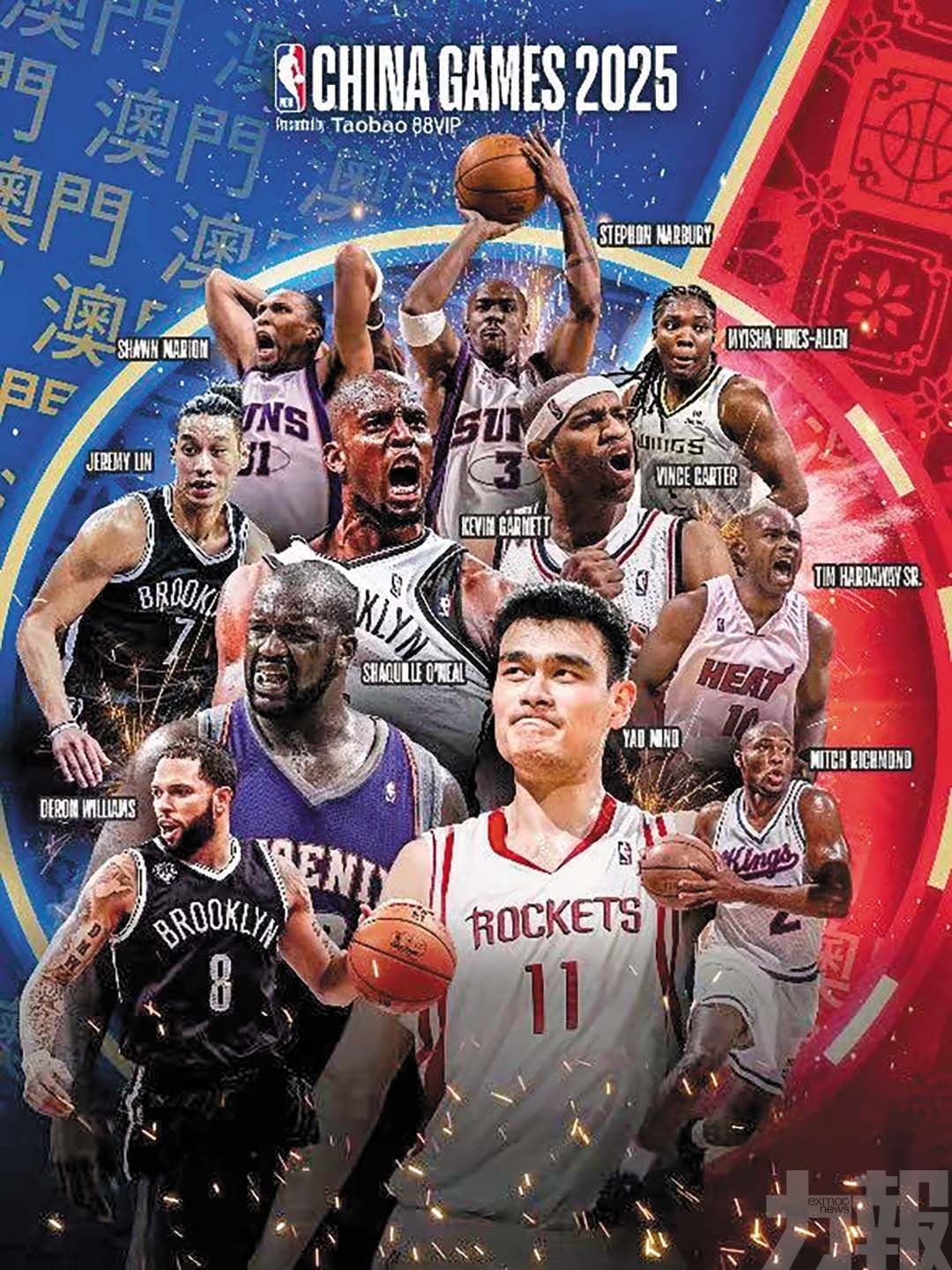 NBA與金沙中國有限公司7日宣布,「淘寶88VIP呈獻—NBA中國賽2025」的十位NBA 傳奇球星陣容正式揭曉。布魯克林籃網隊與菲尼克斯太陽隊將於10月10日(周五)晚8時及10月12日(周日)晚7時,在澳門威尼斯人綜藝館上演兩場季前賽,為球迷帶來盛大的籃球嘉年華。十位傳奇球星及WNBA 冠軍成員麥伊莎•海恩斯-阿倫(Michaela Onyenwere Haynes-Allen)亦將參與系列社區及球迷活動,掀起澳門籃球熱潮。十位傳奇球星澳門,為中國賽帶來熠熠星光。(相關機構提供圖片)