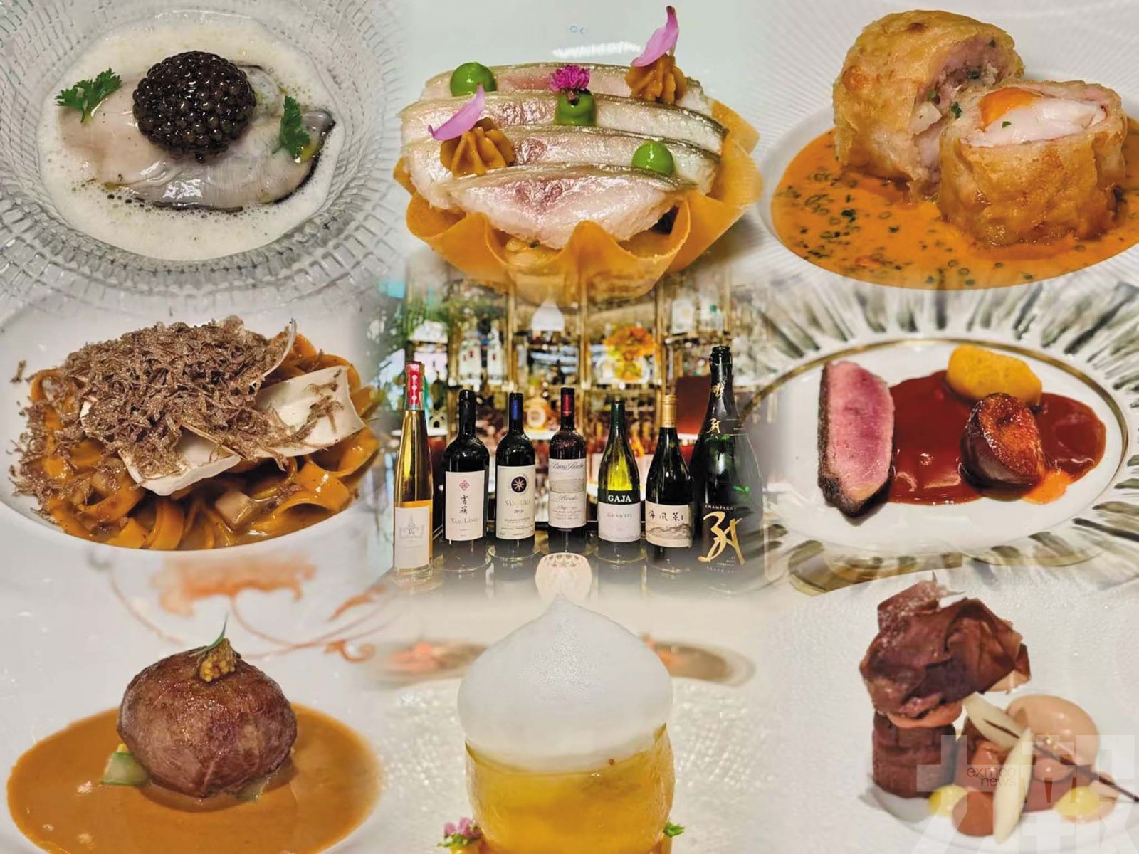 Bombana星廚的招牌手工自制寬面拌入牛肝菌、日本松茸及勃艮第黑松露,搭配意大利皮埃蒙特CERETTO巴羅洛寶石園2001年乾紅,窖陳賦予的成熟泥土氣息與寬面中的醇厚菌香相得益彰,展現意式經典的魅力。Bombana與Marino兩位星廚的招牌沙朗鴨搭配糖漬無花果及曼圖亞南瓜,搭配托斯卡納酒王之一的西施佳雅2010 年,歷經15載的歲月讓酒液逐漸融合、單寧漸趨柔順,典雅馥郁的味道,為意式禽肉美食增添層次。張一峰主廚主理的炭燒沙茶牛肉盒,搭配香格里拉霄嶺生態 2019 年乾紅,受勃艮第釀酒哲學啟發,細膩餘韻讓沙茶風味更顯豐富。