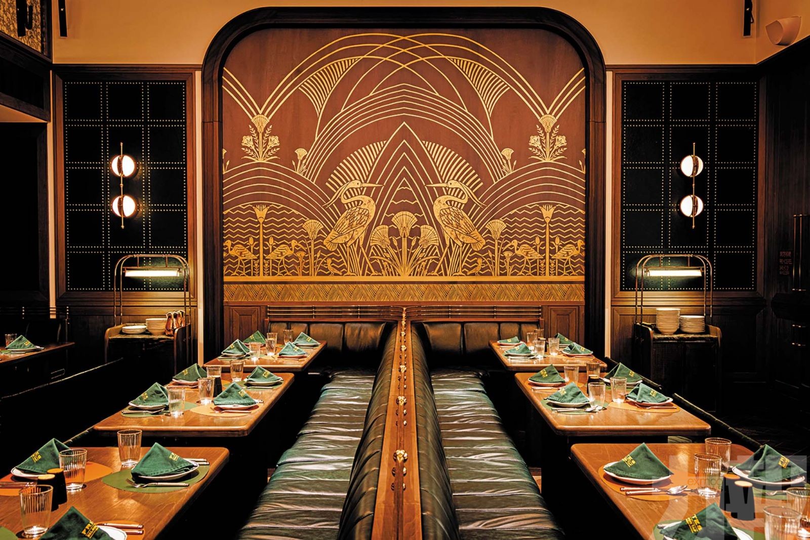 餐廳融合讓人驚豔的裝飾派藝術風格、奢華的材料以及精緻的幾何線條。