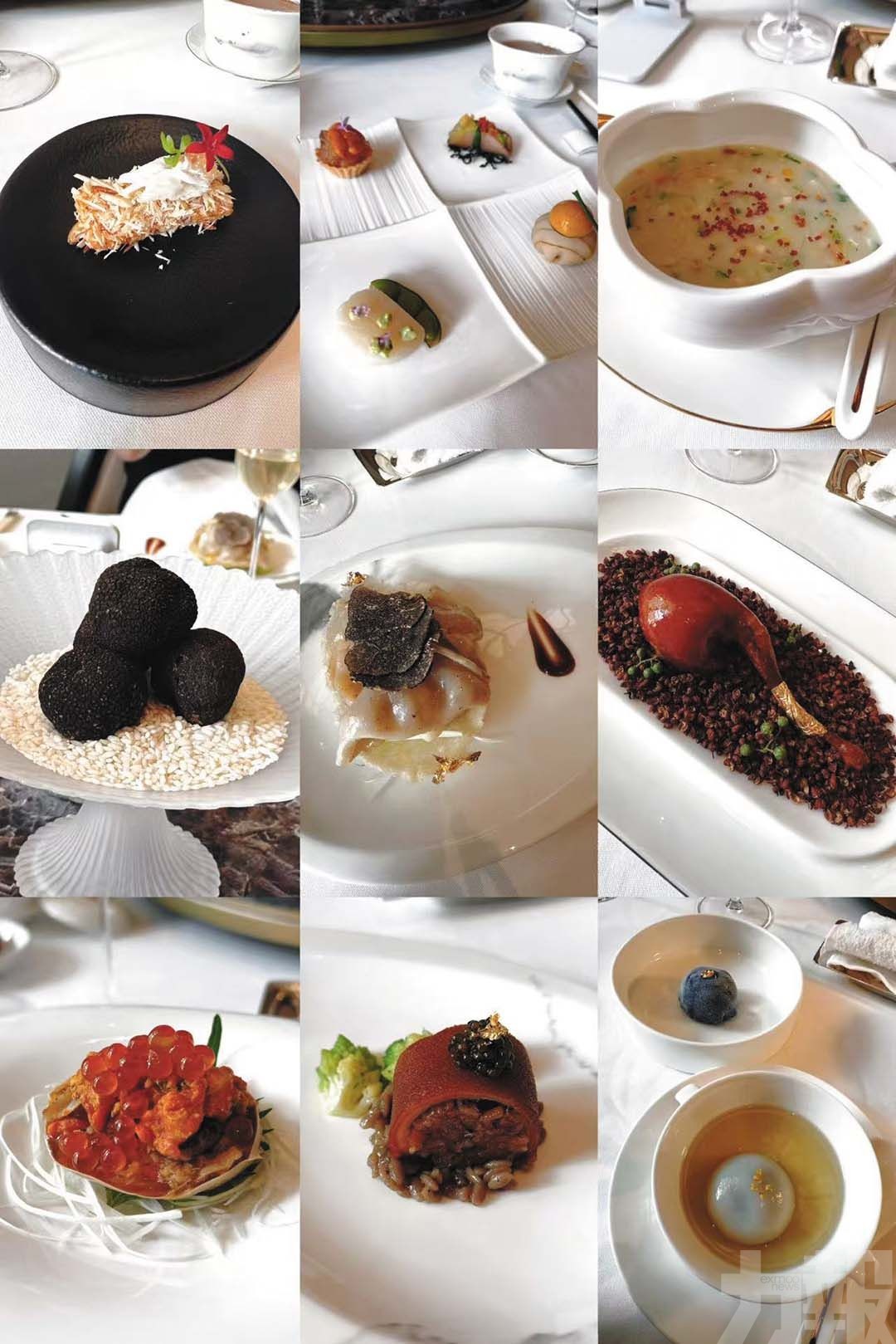 其中一道焦點之作「熟醉茅台釀蟹斗」,選用太湖大閘蟹,經蒸熟後以茅台酒及多種香料浸泡十二小時,拆肉釀回蟹蓋,再點綴以魚子醬,酒香醇厚,鮮味綿長。另一道「金箔法國魚子醬臘味尼泊爾岩米糯米乳豬卷」,則在傳統糯米乳豬卷的基礎上,加入以花椒粉炒香的尼泊爾岩米,帶來兩種米飯的不同香氣與口感,配以法國寶塔花椰菜及金箔魚子醬,盡顯奢華與創意。