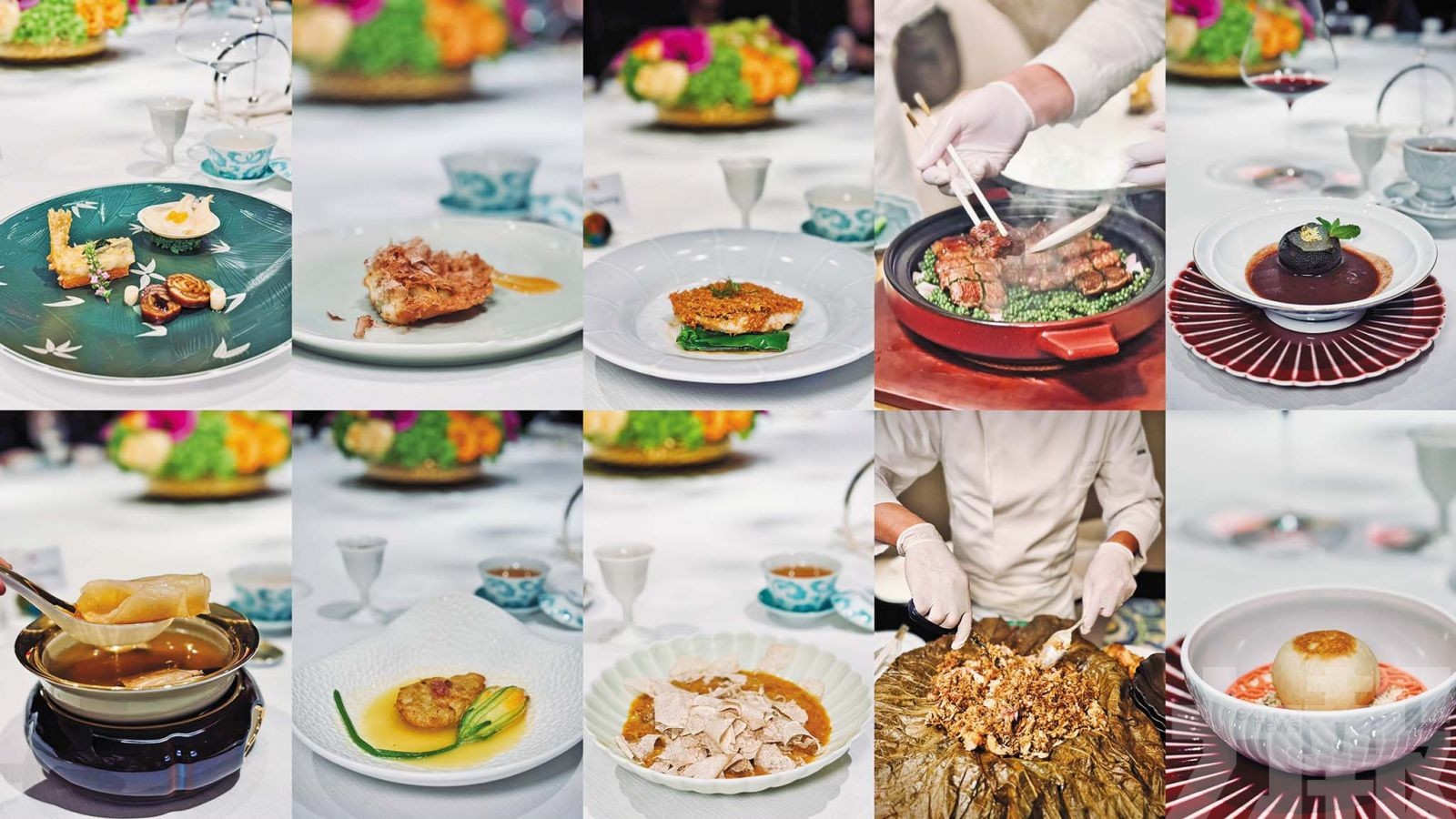 基於對食材本味與烹飪匠心的共同堅守,雙廚帶來的八道臻品皆為心血結晶。聯合創作的「花膠魷魚母珍菌煨鮮角螺」,嚴選福建子持魷魚乾與三頭花膠,經粵式慢煮及海鹽低溫煨制三小時的雙重工藝,海味精華薈萃成湯品,滋補養生。「松茸有米富貴雞」以杭州乞兒雞為靈感,把雲南頂級松茸、鮮蟹肉、北海干貝與香米填入雞腹,搭配桌邊服務,讓食客品味菌香與食材的鮮美。