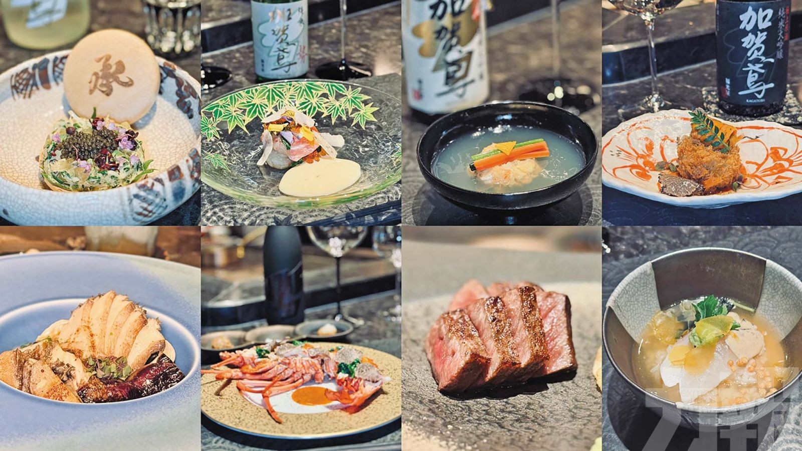 首道菜品以鳥取松葉蟹的清甜與北海道帆立貝的彈嫩組合,鋪上晶瑩的奧西特拉鱘魚魚子醬,鹹鮮在舌尖頃刻綻放;搭配的加賀鳶「萬石乃白」純米大吟釀46,果香輕盈,恰好襯托海鮮的純淨。緊接由長崎金槍魚與加拿大牡丹蝦的腴美登場,裹上自製的京都白味噌醬,現刨意大利白松露,味道濃郁,口感豐富;搭配冬季限定的加賀鳶「勢」純米初榨新酒,飽滿的旨味與食材深度契合。