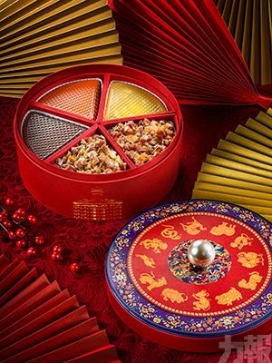 「全盒年糕」一盒五味,五福臨門,各式年糕蘊含經典滋味及美好祝願:「瑤柱臘味蘿蔔糕」結合蘿蔔的清甜及臘腸、瑤柱及蝦米的鹹香,鮮味與肉香交織每一口滿是甘香;「年年有餘迎新歲」清甜馥郁,以一對由金箔作點綴的錦鯉造型,寓意吉祥如意;「發財金瑤芋頭糕」以咸香臘腸、瑤柱、燒肉及發菜等搭配鮮芋頭粒,味道層次豐富;人氣佳品「金磚年糕」及「紅棗糕」軟糯綿甜,寓意生活甜美。每款禮盒包裝精緻奪目,寄意新一年馬運亨通,是滿載心意的送禮首選。