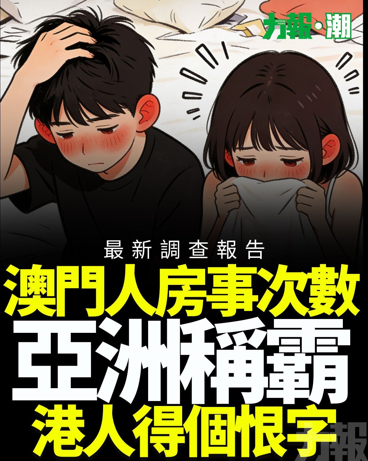 國際生活雜誌《Time Out》最新調查爆出驚人結果——澳門成為亞洲性生活最頻密城市冠軍!67%受訪澳門人每周至少有性生活一次,將各大城市遠遠甩在身後。調查覆蓋全球主要城市數千名受訪者,綜合出亞太區16個城市的數據。