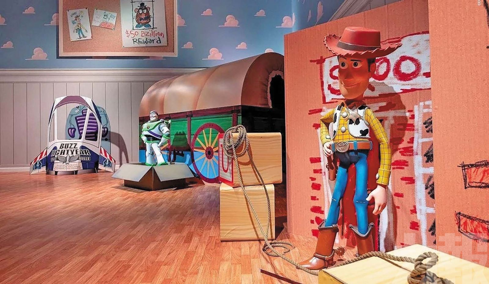 是次展覽最大特色,莫過於由彼思動畫工作室親自監修的「世界最大級規模」實體場景。觀眾不再只是隔著大銀幕觀看動畫,而是能真正走進電影世界。展場內除了重現故事經典場景的布置,更設置了超過24 尊等身大的動畫角色雕像,從大家最熟悉的《反斗奇兵》安仔房間,到《怪獸公司》毛毛與大眼仔的怪獸世界,更有《玩轉極樂園》中色彩斑斕的靈魂世界,以及《玩轉腦朋友》的情感控制台,每一處細節都以1:1比例呈現。觀眾可以像胡迪一樣以玩具視角置身安仔房間,或是跟著多莉在《海底奇兵》的深海場景中穿梭,化身成故事主角,重拾童真!