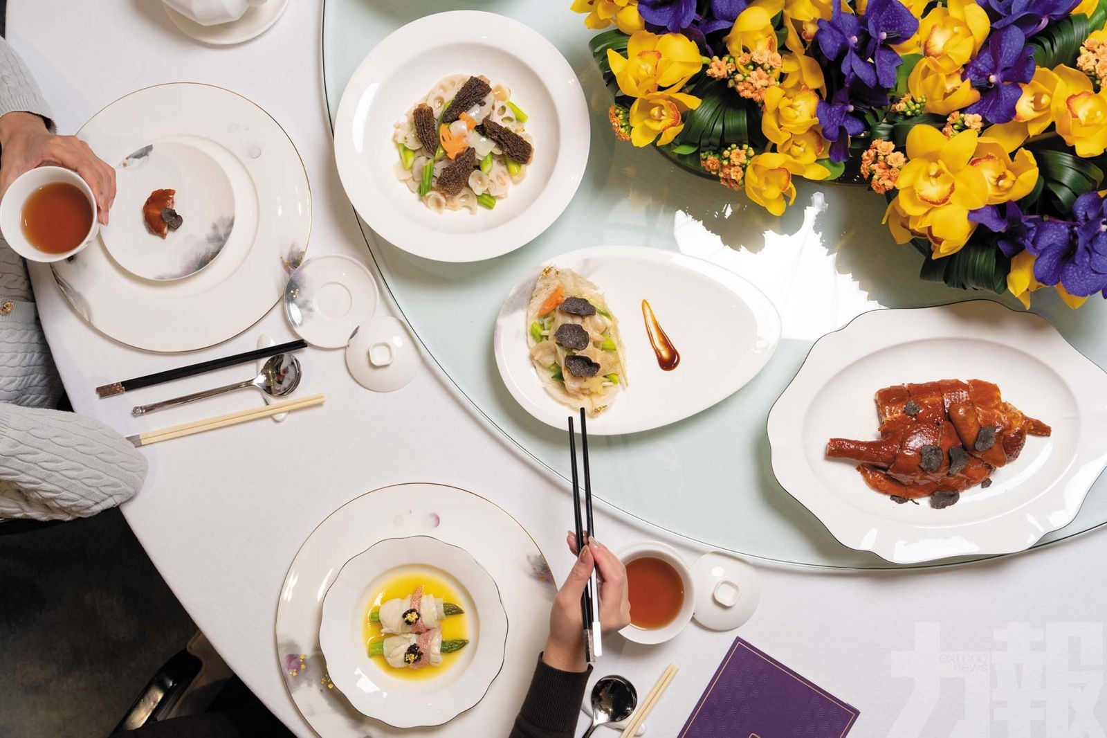 紫逸軒的八周限定菜單,以當季最鮮美的食材為靈感——鮮嫩蘆筍、醇厚羊肚菌、清甜竹筍,盡顯春日生機。精選菜式包括:金華火腿魚子醬蒸星斑卷、蘆筍黑松露炒蜆、黑松露脆皮雞。其他佳餚尚有羊肚菌炒蓮藕片,以及春日時蔬浸豬肝。每道菜皆以簡約細膩的烹調手法,讓食材的本味在舌尖綻放,頌讚春之美。