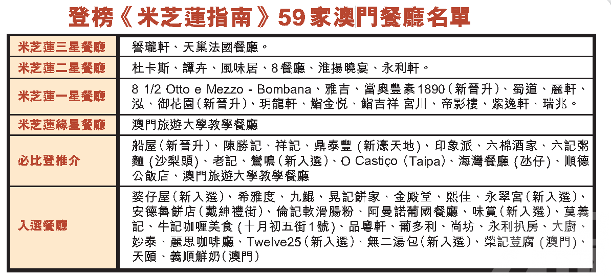 今年澳門有家餐廳上榜。 (本報記者攝)