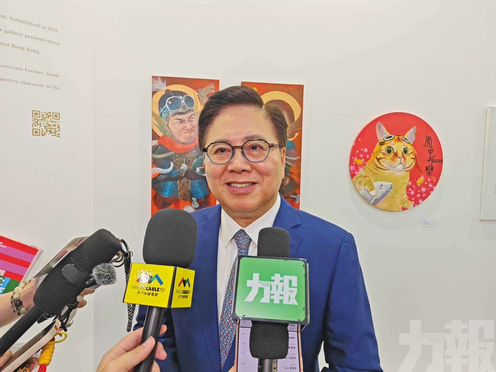 金沙中國有限公司行政副主席王英偉博士表示,希望為澳門藝術家搭建更廣闊的國際藝術展示平台。(林嘉欣攝)