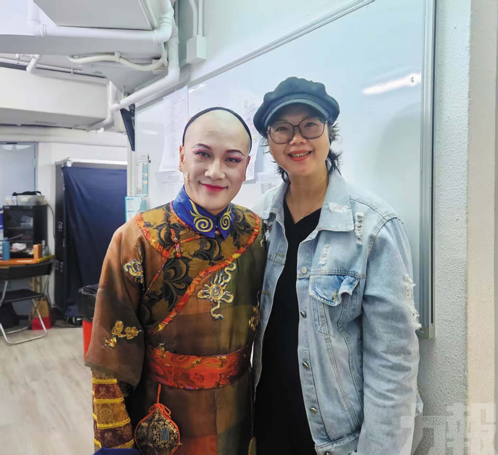 筆者與曾多次獲得香港舞台劇獎提名與獎項、飾演安德海的最佳男主角(悲劇/正劇)劉守正於後台合照。 (筆者提供圖片)