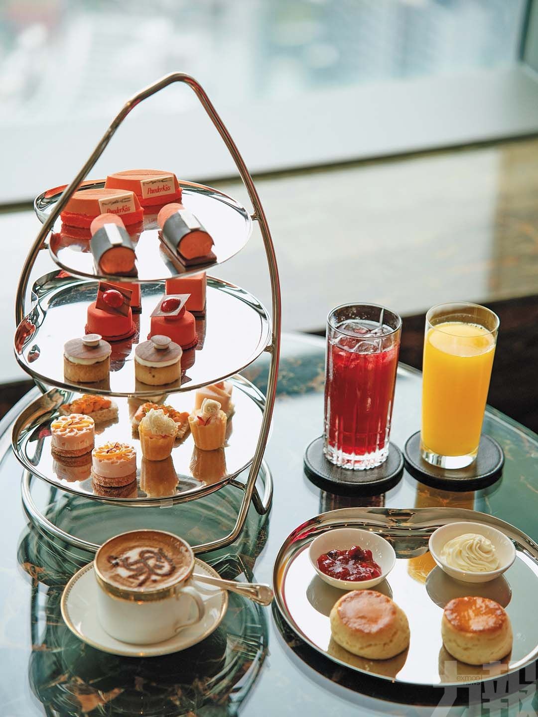 本次聯名下午茶由酒店美點團隊精心研發,深度汲取M•A•C經典產品與潮流色調靈感,將彩妝美學融入甜鹹點心之中。三層點心架宛如彩妝盤,造型精巧、層次豐富。茉莉花茶巧克力慕斯以絲絨口紅為靈感,外層脆皮如口紅管般精緻,內餡綿密濃郁,香氣縈繞舌尖;紅芭樂果奶凍還原經典腮紅質感,粉嫩色澤搭配酥脆塔底,果香清新、口感細膩,將彩妝的視覺與觸覺美感完美複刻於唇齒之間。