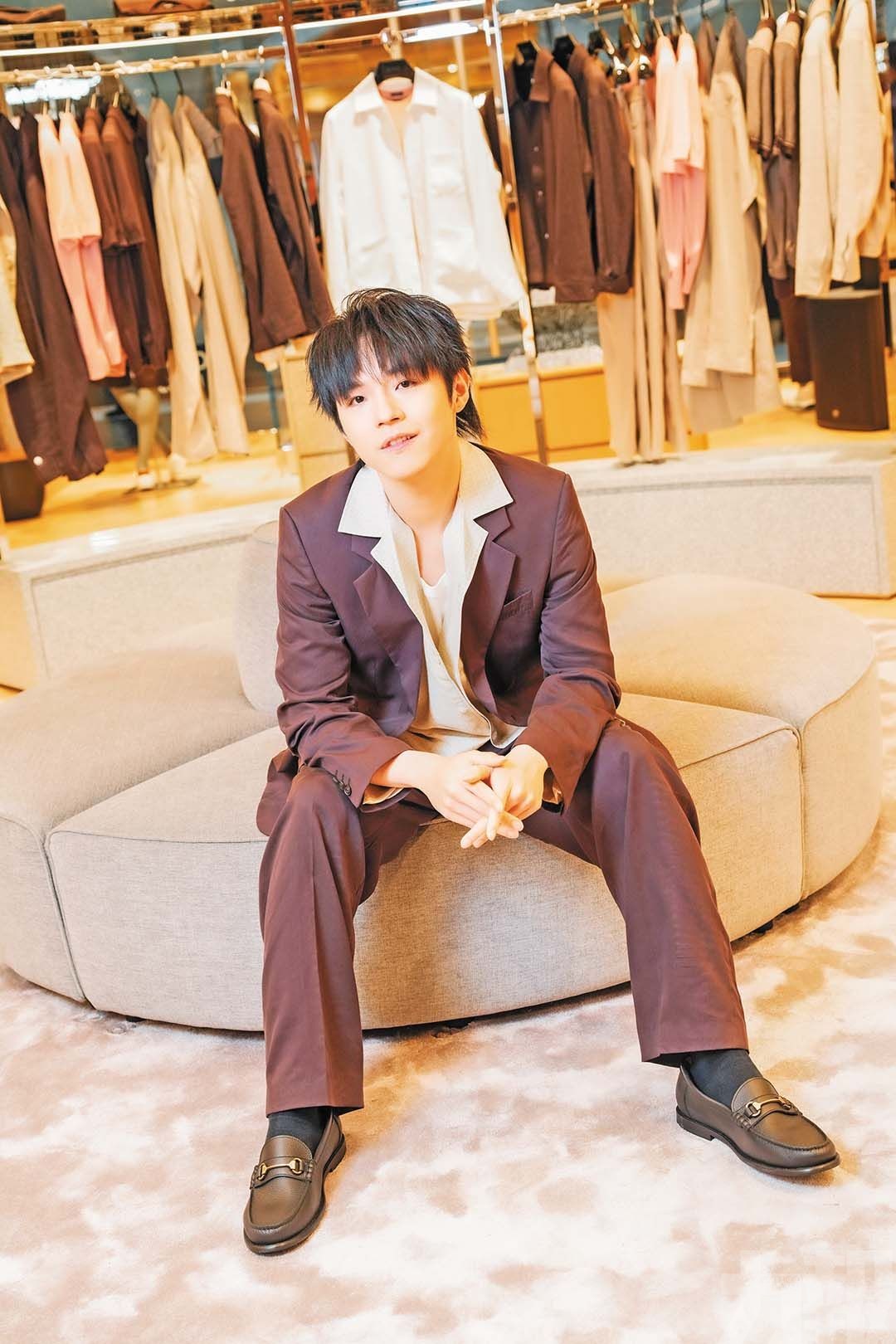辛雲來演繹另一套BOSS 2026春夏系列服飾以淡雅薰衣紫色調西裝造型為亮點,採用輕盈物料的寬鬆斜紋外套,結合立體肩線結構與單排扣、翻領設計呈現,在展現精緻工藝同時,賦予西裝十足的輕盈感;寬版斜紋長褲以寬褲管及前褶細節塑造自在流暢的輪廓,展現兼具質感與夏日氣息的時尚風格。