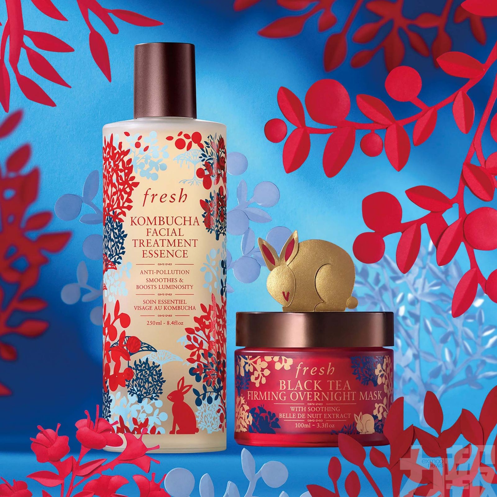 fresh 隆重推出兩款兔年新春限量版皇牌產品,包括紅茶酵素抗氧精華水及紅茶晚間緊緻面膜。限量版產品以多種高效成分滋養肌膚,紅茶酵素提供高效抗氧化保護;紅茶複合物有助改善彈性;柑橘果皮萃取有助均勻膚色;夜美人萃取有助舒緩肌膚,回復平衡。將兩款備受喜愛的產品結合使用,讓肌膚看起來煥然一新、明亮緊緻。為慶祝兔年,fresh 與剪紙藝術家邱珈合作,限量系列中,剪紙大師的工藝突出了fresh煥活肌膚的成分同時以充滿藝術氣息的手法喜迎兔年。